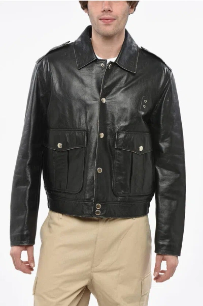 DSQUARED2 Leather Aviator Leather Jacket With Snap Buttons And Patch P In Multi