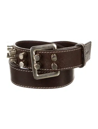 Dsquared² Belt Brown Leather Brass Hardware Buckle Closure Size not listed, estimated from measurements. Unfortunately, due to restrictions, this item may not be eligible for shipping in all areas. | Dsquared² Leather Belt in Brown, Women's S