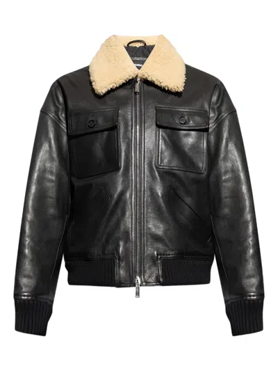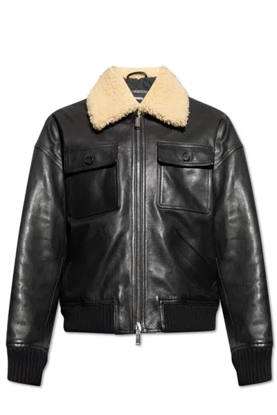 DSQUARED2 Leather Bomber Jacket In Black