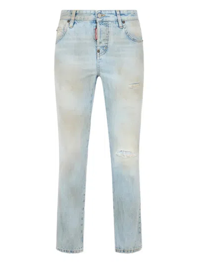 DSQUARED2 Light Wash Distressed Trousers In Blue
