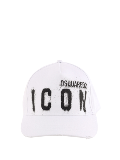 White cotton logo-print cap from DSQUARED2 featuring logo print to the front, curved narrow brim and adjustable strap to the rear. This item is in size UNI and the color is White