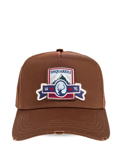 brown appliqué patch adjustable rear strap curved peak eyelet detailing