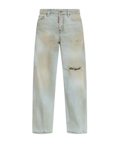 DSQUARED2 Logo Patch Distressed Jeans In Gray