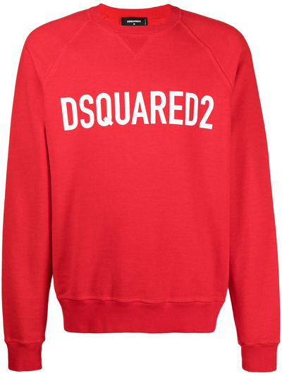 logo-print crew-neck sweatshirt from DSQUARED2 featuring bright red, cotton, jersey knit, logo print to the front, ribbed trim, long sleeves and crew neck.