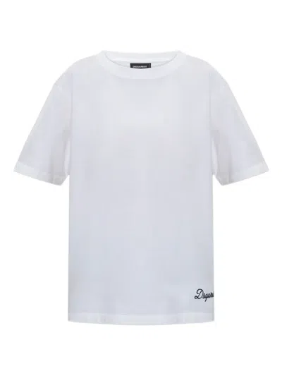 DSQUARED2 Logo-embroidered T-shirt In White
