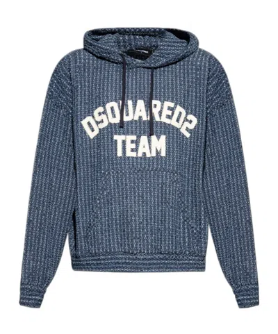 Experience an elevated approach to casualwear with the DSQUARED2 TEAM Logo Hoodie, an embodiment of contemporary artistry and sophisticated design. Rendered in a luscious melange of blue tones, this classic-fit hoodie boasts a refined, subtly oversized silhouette for effortless style. Meticulously crafted from a sumptuous, heavyweight textured knit reminiscent of boucle, its vertical ribbed pattern creates a distinctive, three-dimensional allure. The centerpiece a bold, contrasting white flocked Composition: 100% Cotton 100% Cotton 100% Cotton Composition: 100% Co