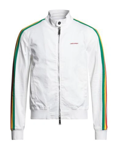DSQUARED2 Man Jacket White Size 42 Cotton, Elastane