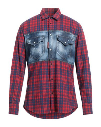 DSQUARED2 Man Shirt Red Size 44 Cotton, Elastane