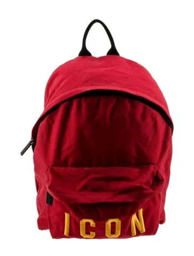Dsquared² Backpack Red Nylon Graphic Print Tonal Hardware Leather Trim Flat Handles & Dual Adjustable Shoulder Straps Embroidered Accent & Single Exterior Pocket Nylon Lining & Single Interior Pocket Zip Closure at Top | Dsquared² Nylon Backpack in Red