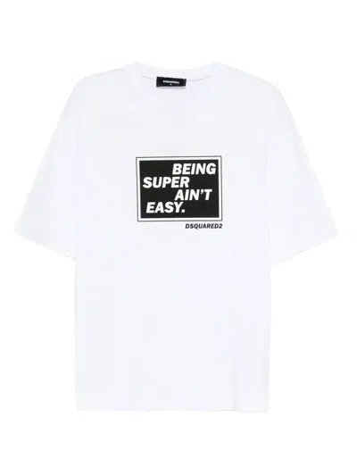 DSQUARED2 Oversized Graphic Print Crew Neck T-shirt In White