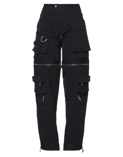 DSQUARED2 Pants. contains non-textile parts of animal origin, twill, strap detailing, solid color, high waisted, tapered leg, regular fit, snap buttons fastening, zipper closure, multipockets, zips at hem, stretch. 97% Cotton, 3% Elastane