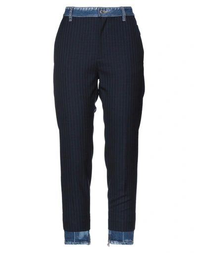DSQUARED2 Pants. denim, cool wool, faded, worn effect, no appliqués, multicolor pattern, medium wash, high waisted, tapered leg, regular fit, 1 button, zipper closure, multipockets, zips at hem. 100% Wool, Cotton