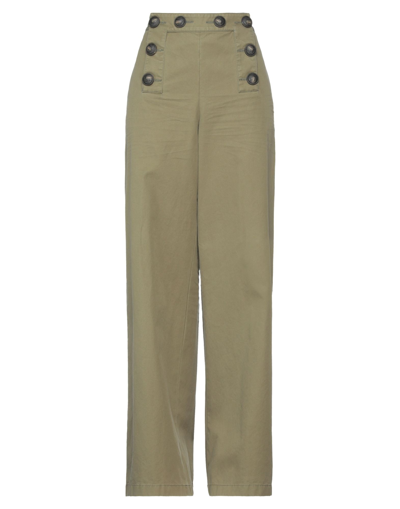 gabardine, brand logo, solid color, high waisted, wide leg, regular fit, button closing, multipockets, pants , Color: Military green , Size: 8