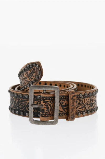 DSQUARED2 Patterned Leather Belt With Studs 40mm In Brown