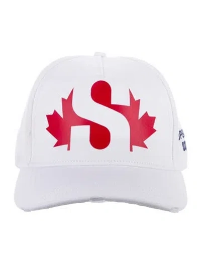 Men's white and multicolor cotton blend Dsquared² baseball cap with printed pattern at front, embroidered accent at sides and back, and adjustable belt closure. | Dsquared² Printed Baseball Cap in White