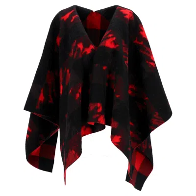 Reversible Poncho In Red Wool In Black