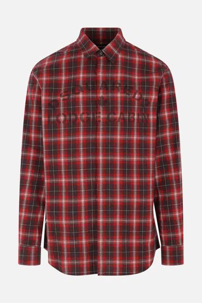 Dsquared2 shirt crafted in cotton flannel with a check pattern and "Dsquared2 Lodge Cabin" print on the chest. It features a classic collar, concealed front button closure, long sleeves with buttoned cuffs and a rounded hem.