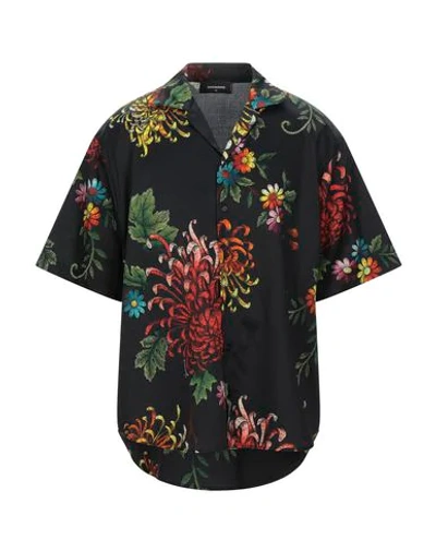 DSQUARED2 Shirts. plain weave, logo, floral design, front closure, button closing, short sleeves, classic neckline, no pockets, contains non-textile parts of animal origin. 100% Cotton