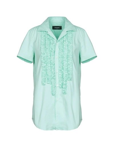 DSQUARED2 Shirts. plain weave, ruched, basic solid color, front closure, button closing, short sleeves, classic neckline, no pockets, stretch. 97% Cotton, 3% Elastane