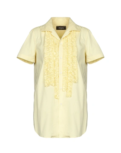 DSQUARED2 Shirts. plain weave, ruched, basic solid color, front closure, button closing, short sleeves, classic neckline, no pockets, stretch. 97% Cotton, 3% Elastane