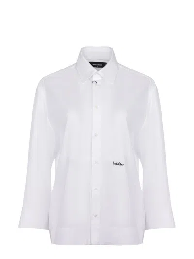 Dsquared2 shirt made of white cotton. Classic collar. Long sleeves. Button cuffs. Front button closure. Contrasting embroidered lettering on the front. 100% cotton Made in Italy.