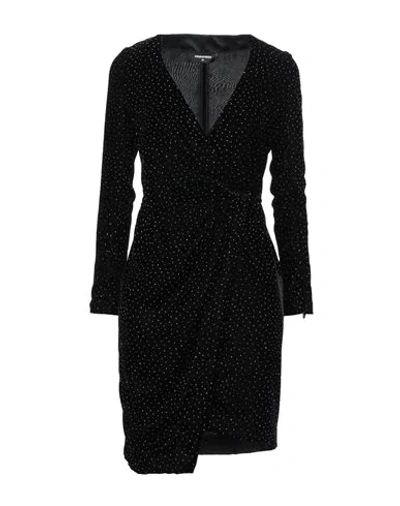 wrap dress, velvet, glitter, solid color, deep neckline, long sleeves, fully lined, self-tie closure, no pockets, small sized , Color: Black , Size: 6
