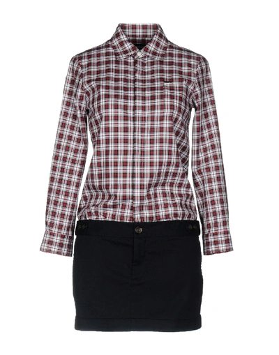 DSQUARED2 Short dresses. gabardine, plain weave, logo, tartan pattern, classic neckline, long sleeves, multipockets, front closure, button closing, stretch, dress, small sized. 97% Cotton, 3% Elastane