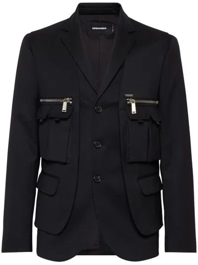 black virgin wool blend front button fastening long sleeves four front flap pockets internal logo patch