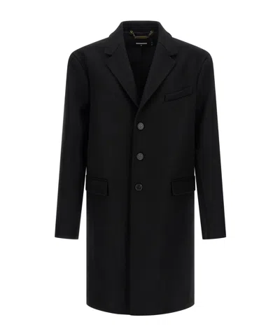 DSQUARED2 Single-breasted Midi Coat With Monogram Lining In Black