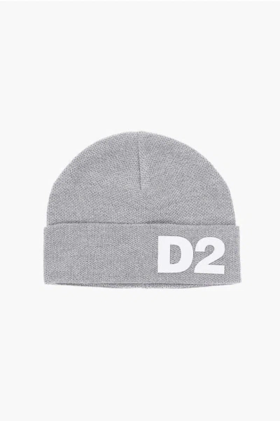 DSQUARED2 Solid Color Beanie With Embossed Logo In Gray
