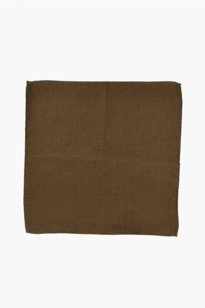 DSQUARED2 Solid Color Silk Pocket Square With Micro Patterns In Brown