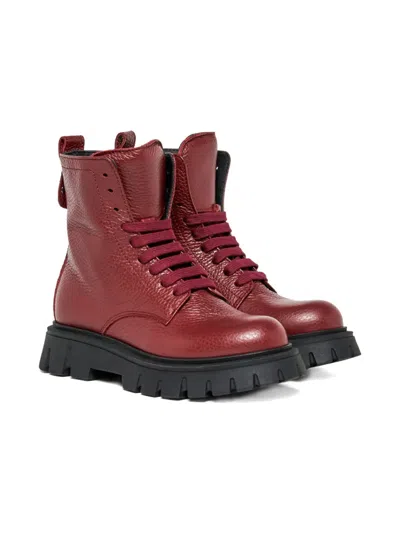 DSQUARED2 Kids' Stivali Anfibi In Pelle Con Stud D2 In Brown