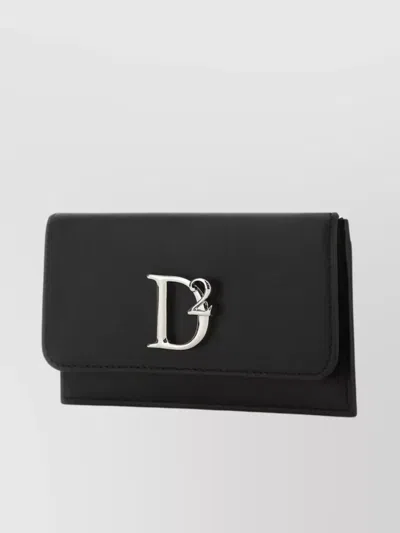 DSQUARED2 Streamlined Rectangular Leather Card Holder In Black