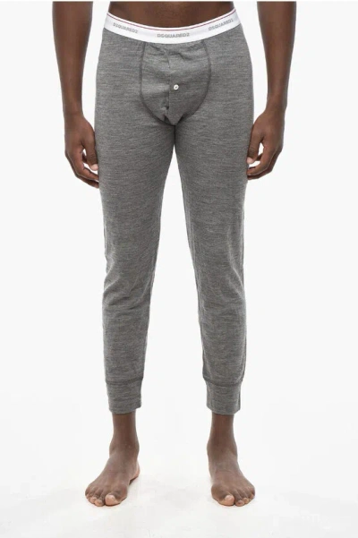 DSQUARED2 Stretch Wool Pyjamas Pants With Logoed Elastic Band In Gray
