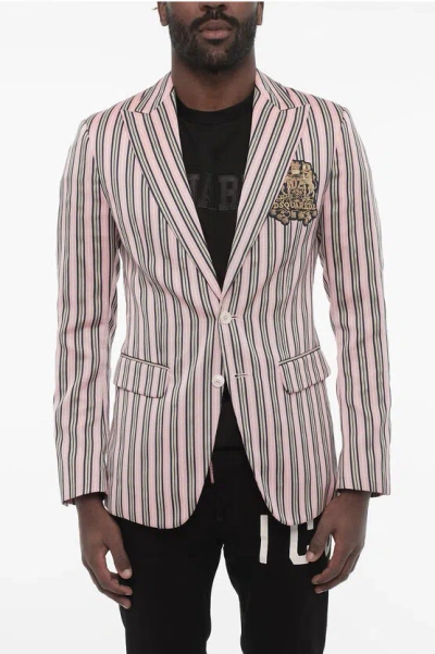 DSQUARED2 Striped 2 Button Blazer With Flap Pockets In Multi