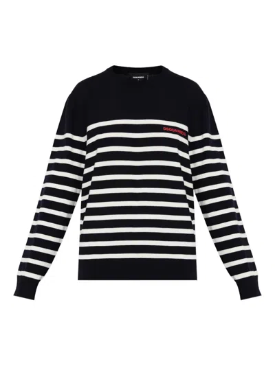 DSQUARED2 Striped-pattern Wool Sweater In Blue