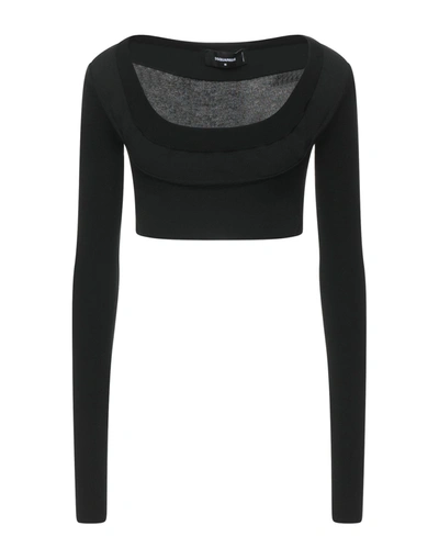 knitted, no appliqués, solid color, round collar, long sleeves, no pockets, stretch, lightweight knit , Color: Black , Size: XXS