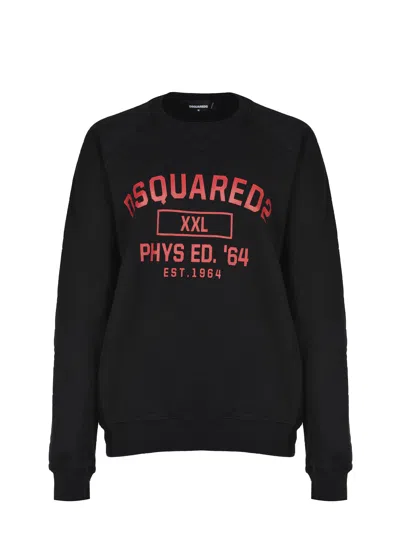 Dsquared2 sweatshirt made of black cotton.Ribbed crew neck.Long sleeves.Logo lettering and contrasting writing on the chest.Ribbed cuffs and hem.100% cottonMade in Italy