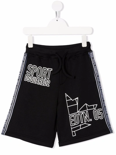 DSQUARED2 Teen Slogan-print Drawstring Track Pants In Black