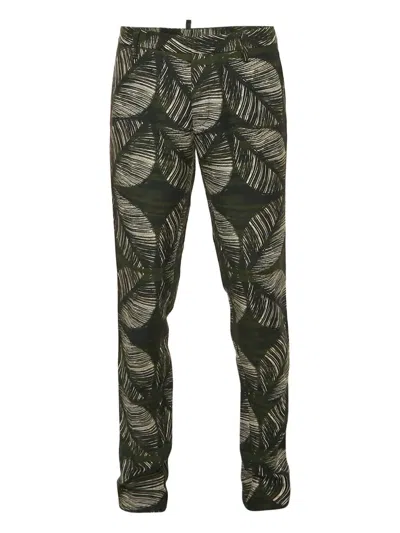 dark-green tropical leaf print straight leg mid-rise waist viscose rayon linen blend Condition: EXCELLENT. This previously owned item is in near-perfect condition with no signs of damage or use.