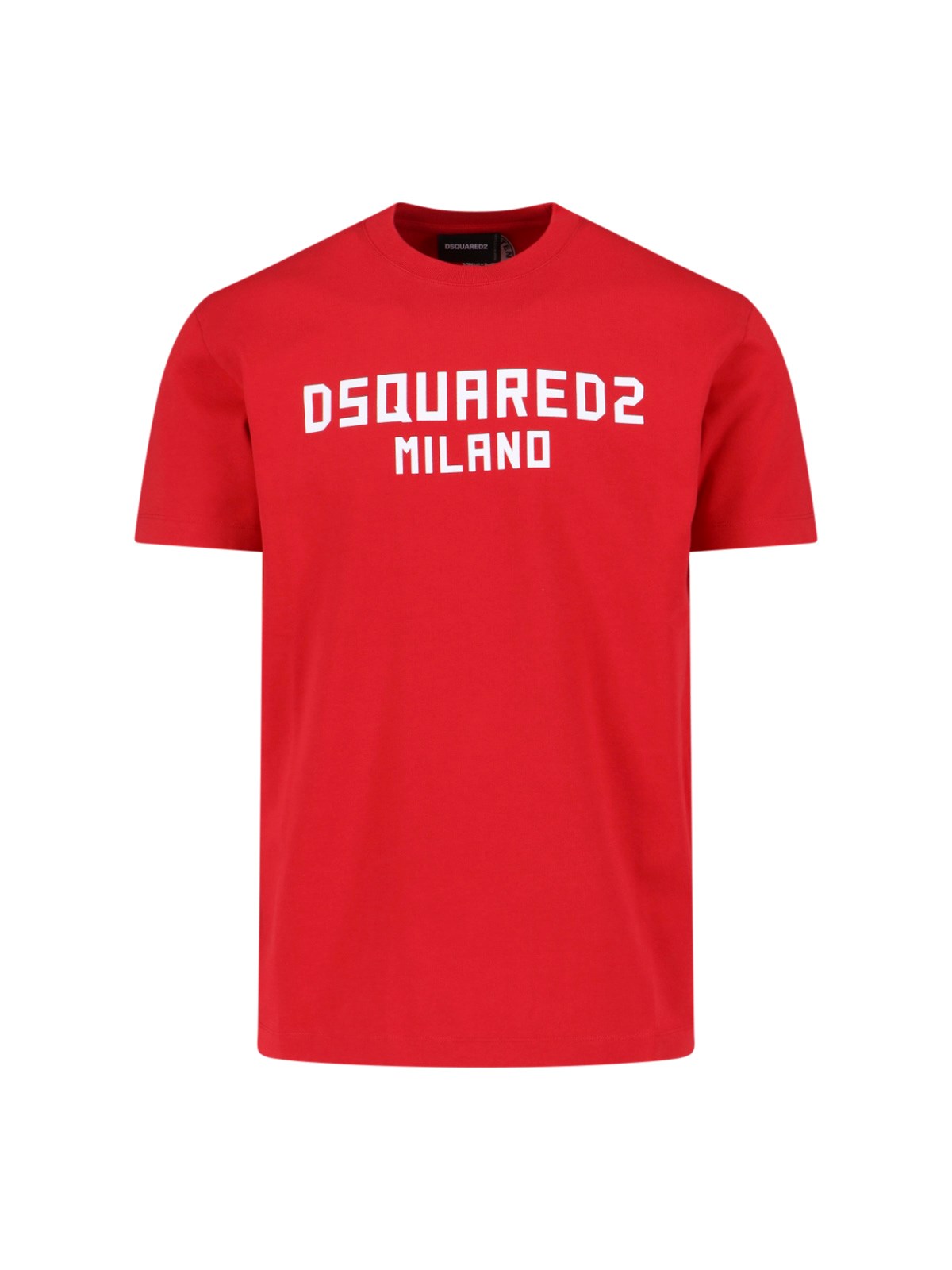 Dsquared2 red cotton logo t-shirt with crew neck, short sleeves, contrasting logo printed on the front, straight hem. Composition: 100% Cotton