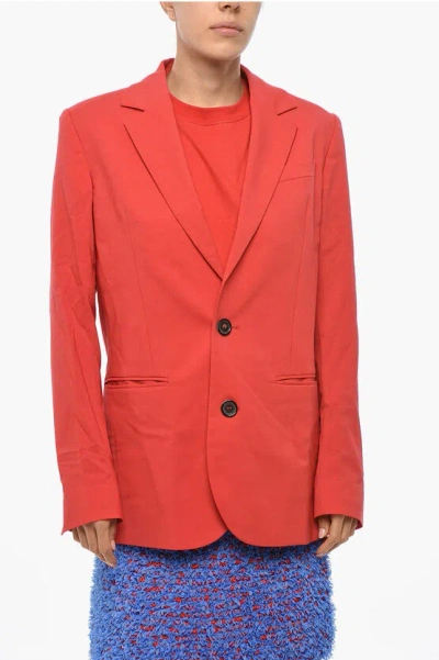 Unlined Wool Blend Blazer With Flush Pockets In Red