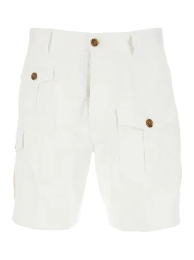 DSQUARED2 White Bermuda With Asymmetric Cargo Pockets And Belt Loops In Gray