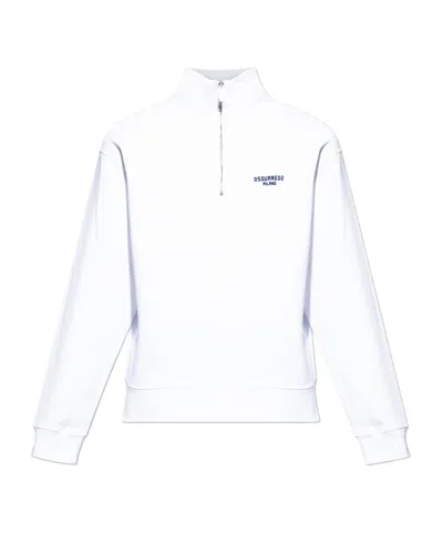 white half zip fastening long sleeves ribbed cuffs and hem logo embroidery