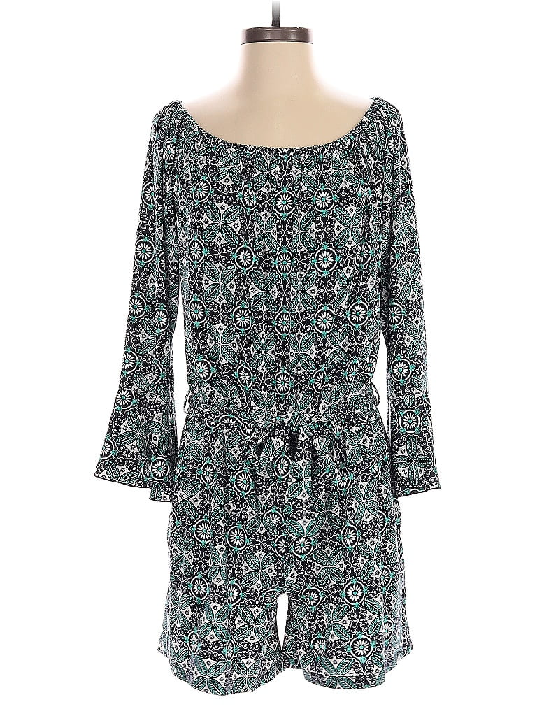 Du Jour Romper, Size: Small. Item Details: Blue, Print Pattern, Boatneck, Flared Leg, 3/4 Sleeve, Women's Dresses