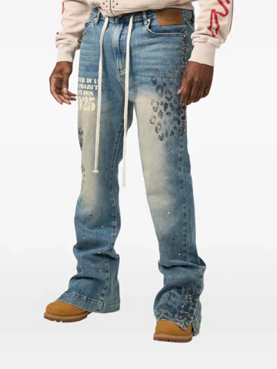 blue leopard print rhinestone embellishment drawstring fastening five pockets split cuffs
