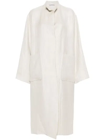 DUŠAN Herringbone-pattern Linen Coat In Neutrals