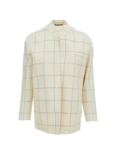 Mandarin jacket in linen and wool blend Checked pattern Open-front design Comfort fit Chest pocket Two front pockets Mandarin collar Color: white Made in Italy Composition: 60% Linen, 40% Wool
