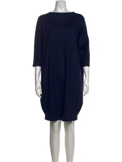 Dusan Wool Shift Dress Blue Three-Quarter Sleeve with Bateau Neckline Fit: Dresses by Dusan typically fit true to size. | Dusan Wool Knee-Length Dress in Blue, Women's S