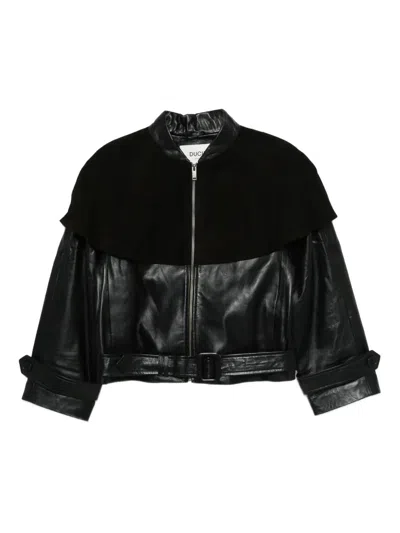 DUCIE Rose Leather Jacket In Black